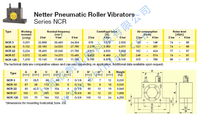 氣動(dòng)滾軸振動(dòng)器NCR3/NCR10/NCR22/NCR57/NCR120 |